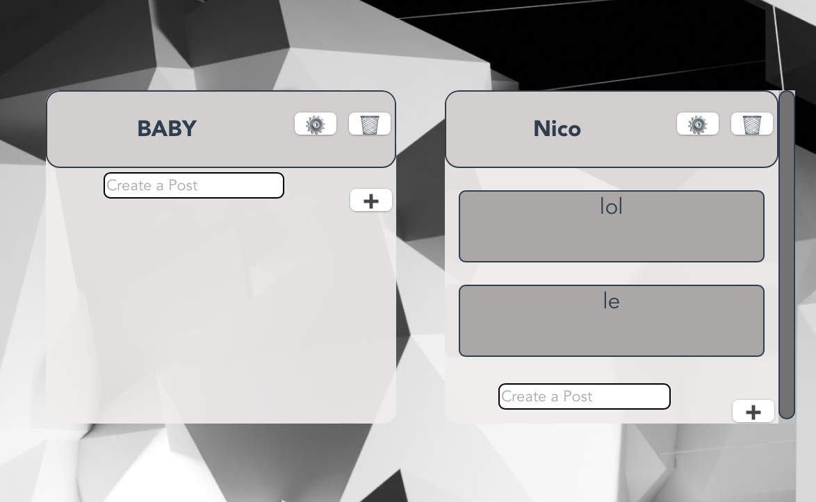 Création d'un Trello-Like avec possibilité d'ajouter de listes, de postes et de commentaires via une API.